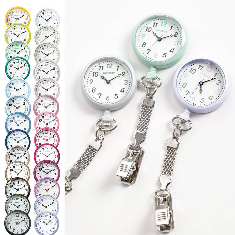ナースウォッチは、クリップやカラビナで服に付けられる形状が多いです。腕時計が禁止されている職場でもナースウォッチがおすすめです。