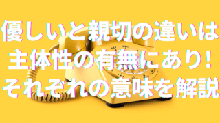 お役立ち 優しいと親切の違いは主体性の有無にあり!それぞれの意味を解説 「優しい」と「親切」は、どちらも意味が似ていて結局どう使っていいかわからず悩んでしまいますよね。私もこの2つの言葉について調べるまでは、違いは分かっても使い分け方が分からずモヤモヤしていました。コミュニケーションする中で間違った言葉遣いをし... 2022.05.11 お役立ち