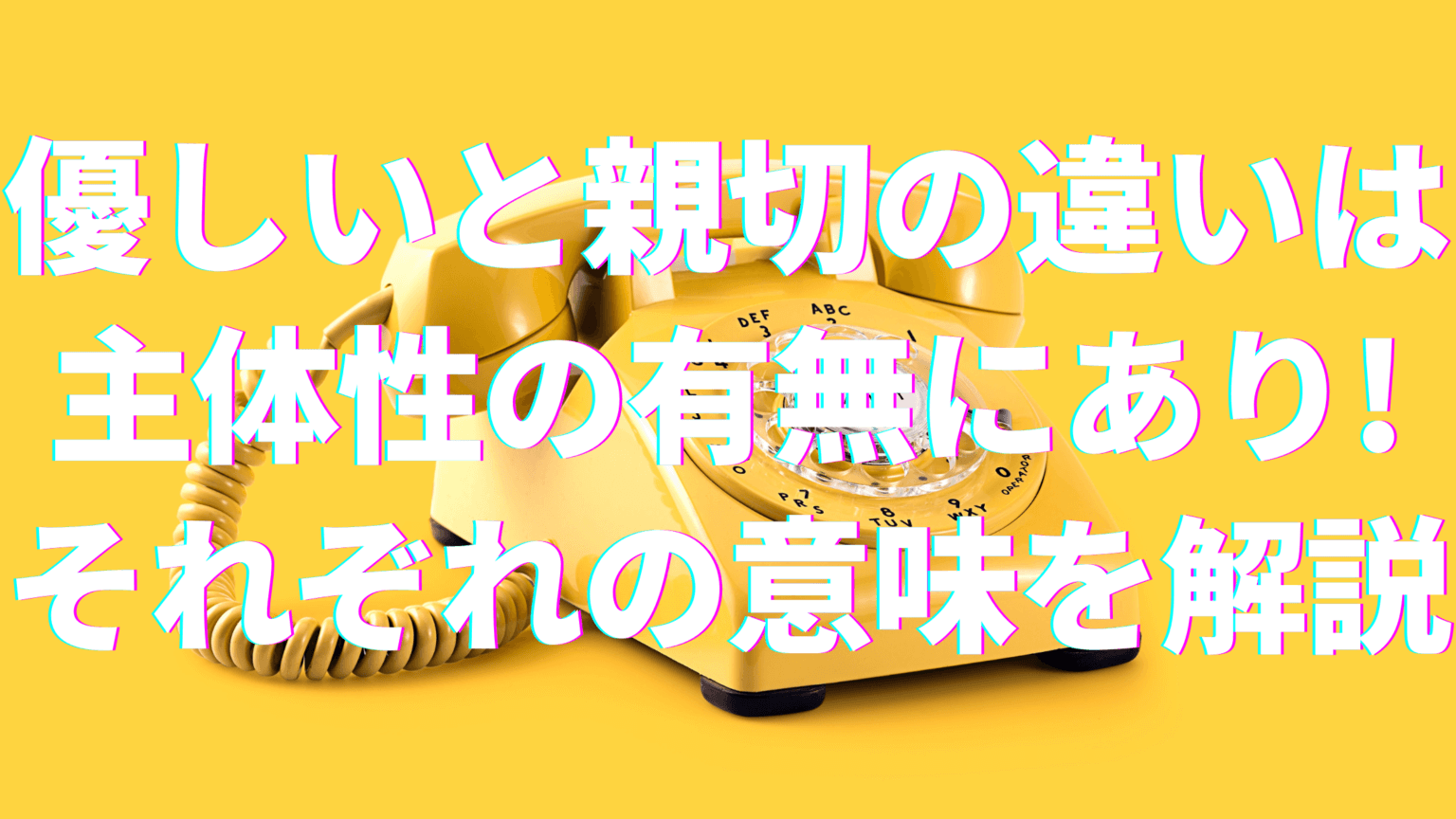 「優しい」と「親切」の違いは主体性の有無で、具体的にいうと「相手に対してどの程度行動を起こしているか」にあります。